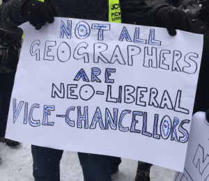 In the UK, a shared sense of hubris continues to drive higher education policy (by government) and strategy (by Universities), around which the contradictions and conflicts between these actors revolve. It also lies behind the increasingly toxic mess of top-down, vicious, paternalist, patronising management systems that has come to characterise University life. A significant proportion of University staff have decided to call BS on the whole complex of funding, financing, and management over the last few weeks. As this dispute moves towards its fourth week, what is becoming increasingly clear is that it is not just that the governance of collective University decision-making is in crisis – that much is clear enough when the constituent members of UUK are themselves complaining that this organisation can’t be trusted – but that the whole model of individual University governance is itself in need of urgent reassessment. It’s easy to fixate on the responsibilities of VCs in all of this, but McGaughey is surely right to suggest that it is the whole edifice of upper-level University governance that needs to be democratised: “in every university, staff, the University and College Union, and students should demand every governing body has a majority elected by staff and students.” The reason why ‘democracy’ is the answer to the crisis of British higher education exposed by this dispute is not so much because ‘neoliberalism’ is opposed to democracy (the two are rather closely entangled), but because what everyone keeps calling ‘neoliberalism’ is really a specific assemblage, shall we say, of practices and meanings of accountability, freedom, and public value. At least that’s my argument, and I’m sticking to it.